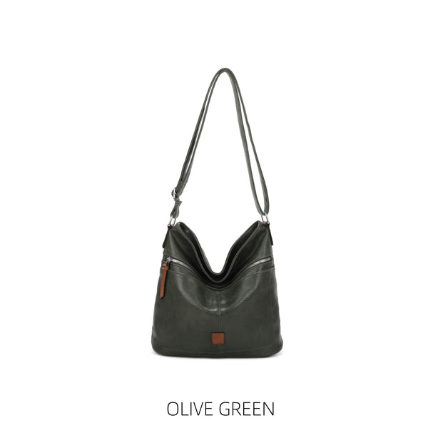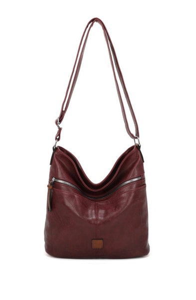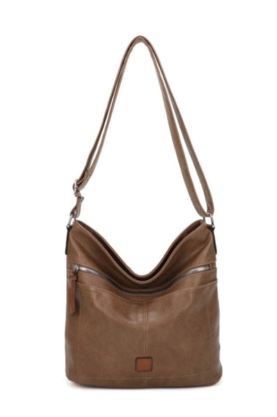 Ladies faux leather crossbody/shoulder bag with multiple compartments.