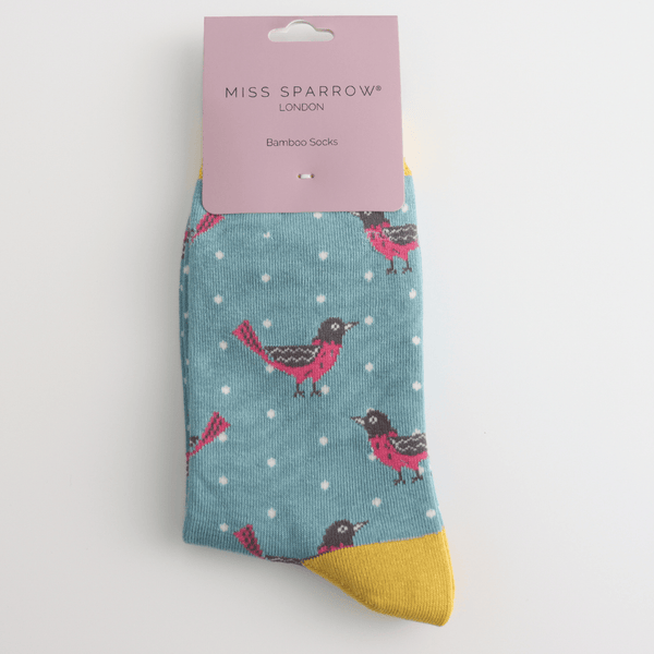 Ladies Miss Sparrow Bamboo Socks Blackbirds Design Duck Egg