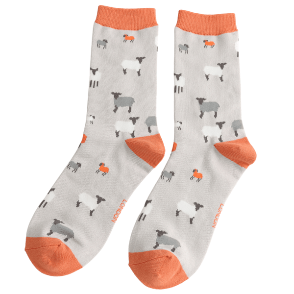 Ladies Miss Sparrow Bamboo Socks Sheep Family Design Pale Grey