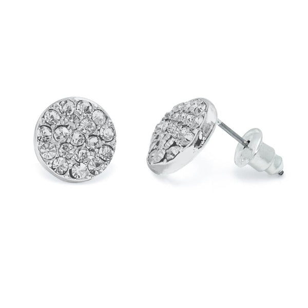 Cute silver plated round crystal stud earrings. Hypoallergenic. Come presented on silver foiled card in a luxury hanging box.