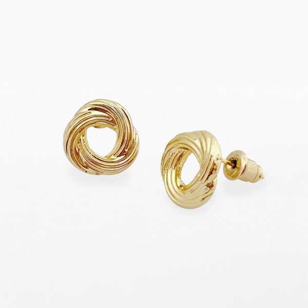 Knot gold plated stud earrings. Hypoallergenic. Earrings measure: 13 mm diameter. Come presented on silver foiled card in a luxury hanging box.