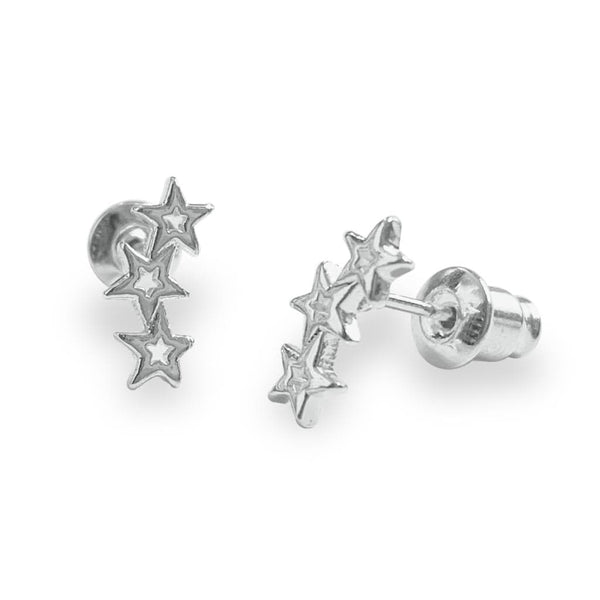 Lucky shooting stars silver plated stud earrings. Hypoallergenic. Earrings measure: 8 mm diameter. Come presented on silver foiled card in a luxury hanging box.