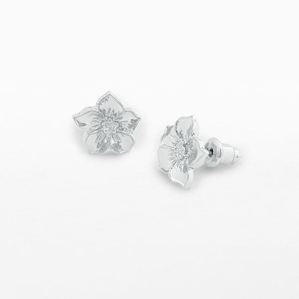 Lotus silver plated stud earrings. Hypoallergenic. Earrings measure: 10 mm height. Come presented on silver foiled card in a luxury hanging box.
