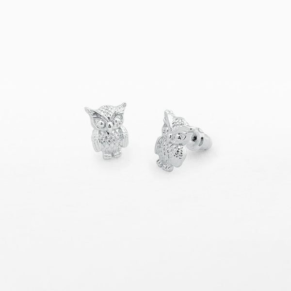 Owl silver plated stud earrings. Hypoallergenic. Earrings measure: 10 mm height. Come presented on silver foiled card in a luxury hanging box.