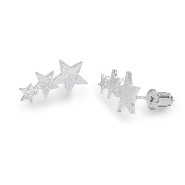 Cute trio of stars silver plated studs. Hypoallergenic. Come presented on silver foiled card in a luxury hanging box.