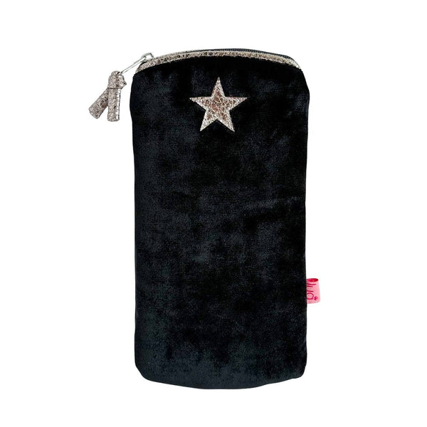 Classic silk velvet zipped glasses purse/pouch with an appliqued little metallic faux leather star.