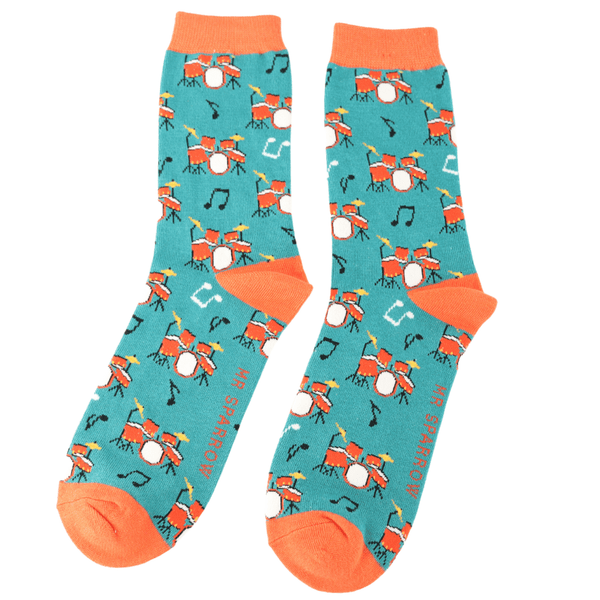 Men's Mr Sparrow Bamboo Socks , Drums Design Teal