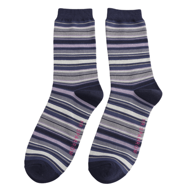 Men's Mr Sparrow Bamboo Socks , Multi Stripes Grey and Purple