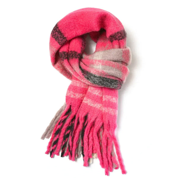 Miss Sparrow Jess Tartan Chunky Knit Scarf Pink