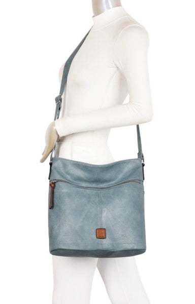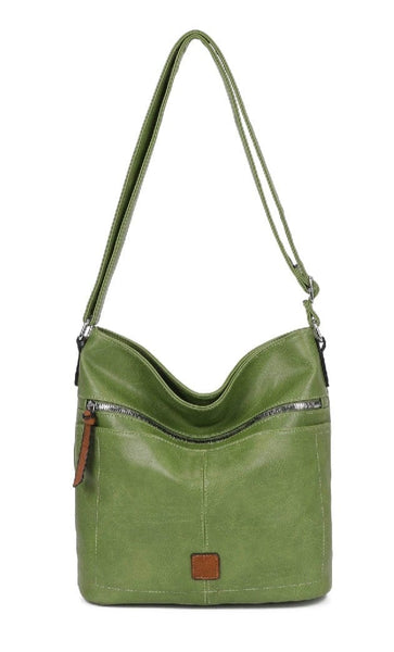 Multi Pocket Bucket Shoulder Bag, Faux Leather