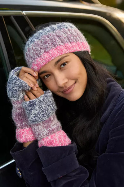 Stay warm as the temperature drops with our Berlin accessories. Featuring a soft mohair/wool mix in purple and pink tones - you're sure to stay cosy. Unlined.
