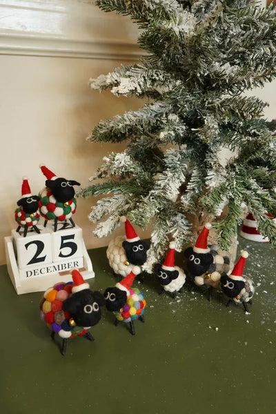 Helen standing decoration is now Christmas-ready! This Herdwick lamb will make the perfect Christmas decoration for all sheep lovers. Approx. height 13cm (including her Santa hat), length 11 cm.