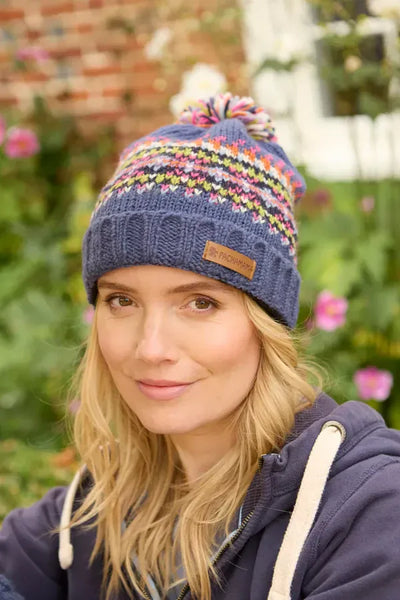 The Iona range is made using traditional fair isle patterns mixed with modern colours. This timeless fair isle pattern has gorgeous bold colours perfect to keep you in style. Iona bobble beanie is lined around the forehead to keep you extra warm.