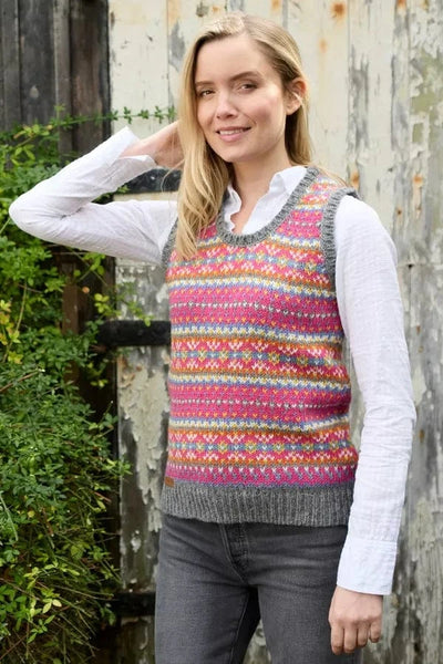 The Iona Collection is made using traditional fair isle patterns mixed with modern colours. This timeless fair isle pattern has gorgeous bold colours perfect to keep you in style. The Iona tank tops are sure to keep you stylish and cosy in all seasons. Also available in Burgundy or Denim colours.