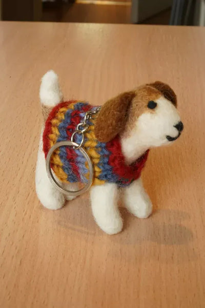 Pachamama hand felted pooch dog keyring. Jack Russel Terrier - Carry a little felt version of your pup with you. Felt decoration. 100% wool. Fair trade and hand crafted in Nepal.