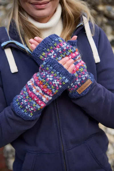 Pachamama Killarney (Merino) Handwarmers - A pattern of bright colours and denim. 100% Pure Merino Wool. Unlined. Fair trade and handmade in Nepal.