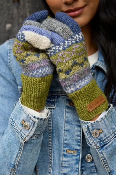Pachamama Ladies Classic Fairisle Gloves, Olive Green , Handknitted , Fairtrade
