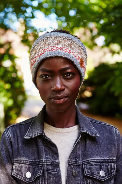 Pachamama Ladies Fairisle Headband, Grey , Handknitted , Fairtrade