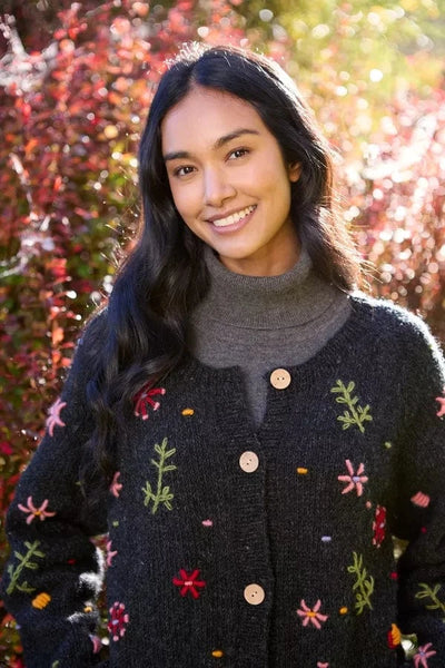 Pachamama Lugano Hand Knitted Cardigan Charcoal, Fair Trade