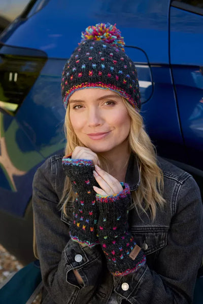 Pachamama Mosaic Bobble Beanie. Fleece lined. Mosaic Stitch. Fair Trade and Handmade in Nepal.