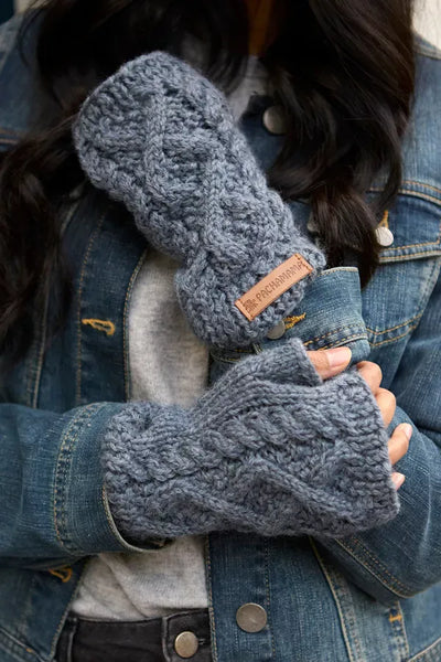 Pachamama Enniskerry (Merino) Handwarmers Slate Blue - Traditional Cable Knit in Soft Pure Merino Wool. Unlined. Fair trade and handmade in Nepal.