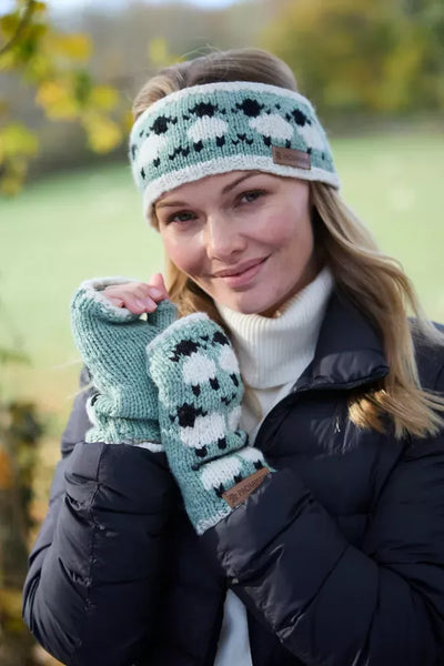 Pachamama Sheep (Merino) Headband Green - Flock of Sheep in Soft Pure Merino Wool. Unlined. Fair trade and handmade in Nepal.