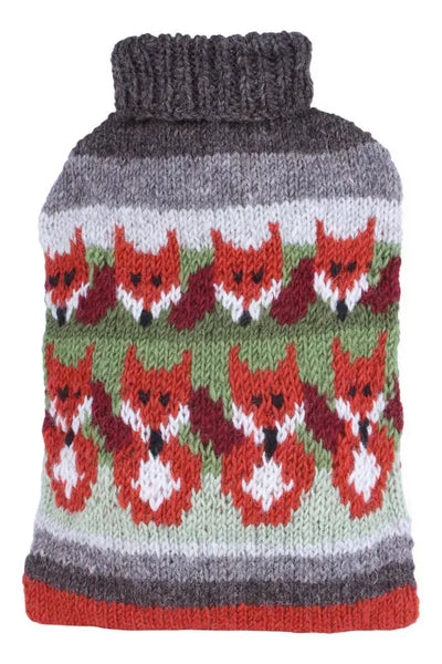 Pachamama Skulk of Foxes Hot Water Bottle , Hand Knitted , Fairtrade