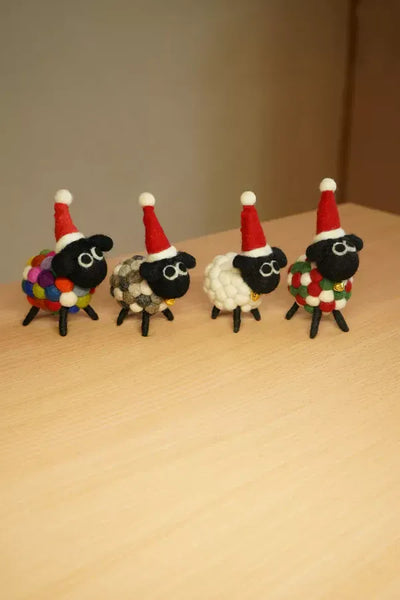 Hand felted wool Christmas ornament, cute animal design. Christmas theme felted sheep. Fair Trade & Handmade in Nepal