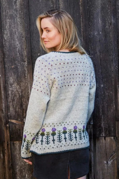 Thistle - Featuring colours from the heather glens of Scotland, this national flower creates a pretty, delicate pattern perfect for those who love floral designs. Each thistle is carefully embroidered by hand.