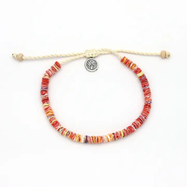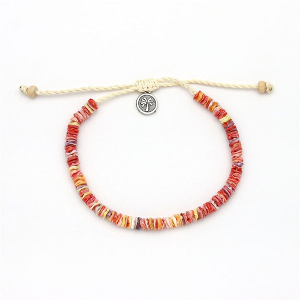 The Ahiki Natural Shell Bracelet brings a relaxed, coastal feel to your everyday look. Handmade with real shells and colourful beads, it’s easy to wear solo or layered with your favourite pieces. A thoughtful unisex gift and a simple piece that never goes out of style. • Handmade with natural and coloured shell beads strung on durable wax polyester cord • Measures approx. 17cm with an extra 7cm cord on either side of a sliding knot extension - adjustable for the perfect fit! • Inspired by Bali
