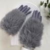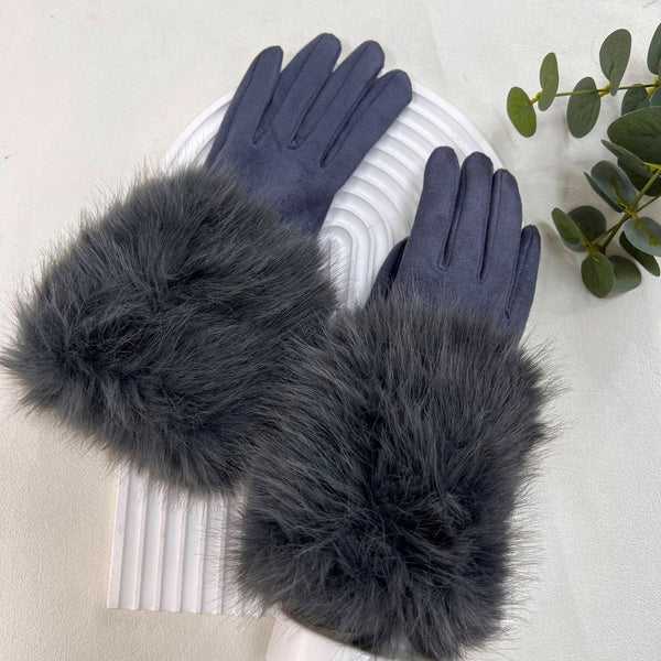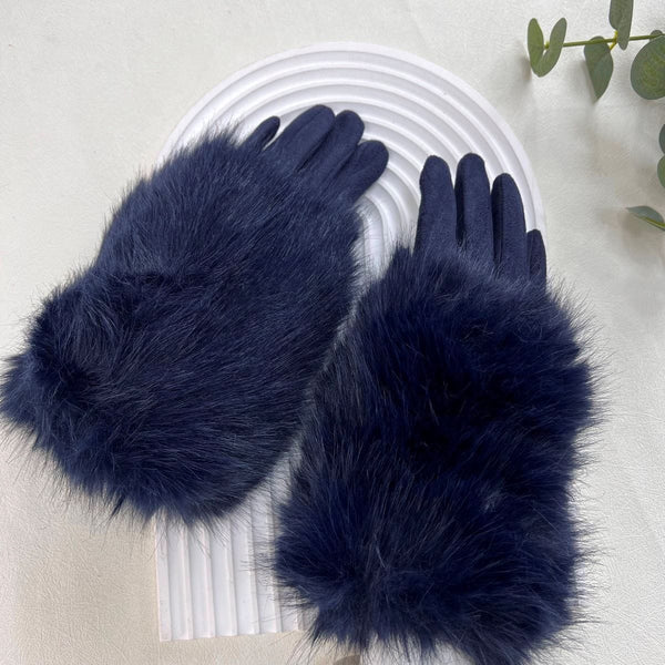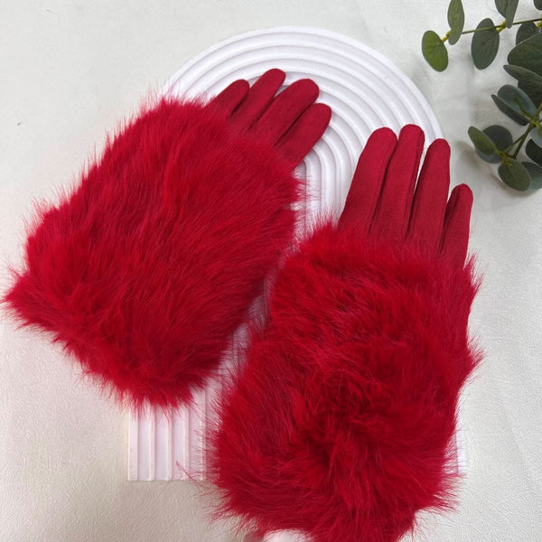 Ladies Velour Gloves with Fur Cuff, Slight Stretch.